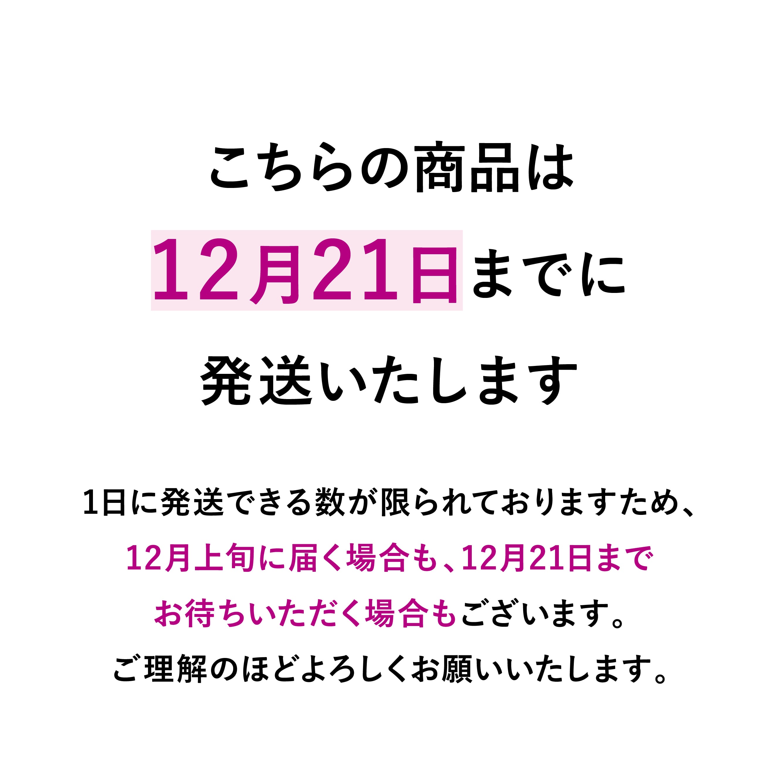 ※1日に発送できる数が限られておりますため、12月中旬に届く場合も、12月21日までお待ちいただく場合もございます。また、いつごろ発送できますか、というご質問にはお答えできかねます。ご理解のほどよろしくお願いいたします。