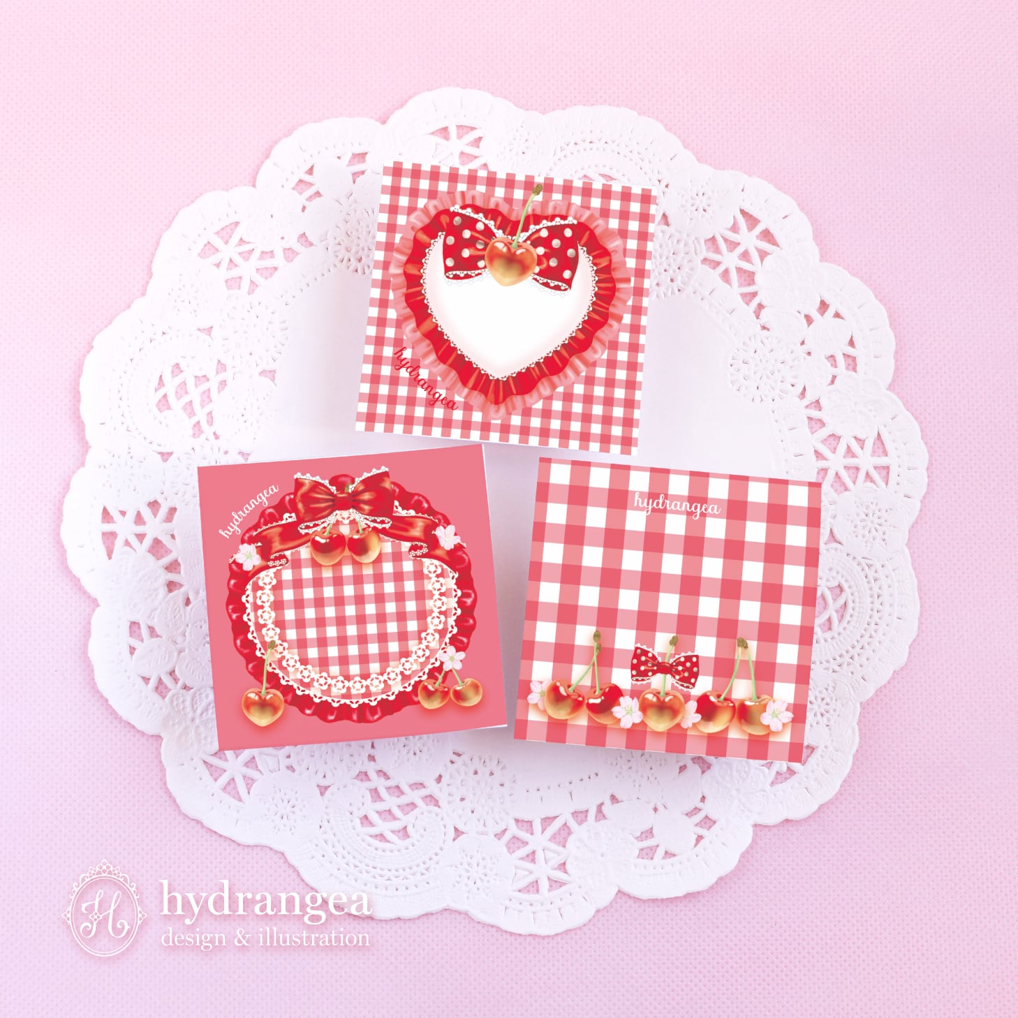 ★受注生産【Berry & Cherry Gingham -cherry-】ミニスクエアメモセット