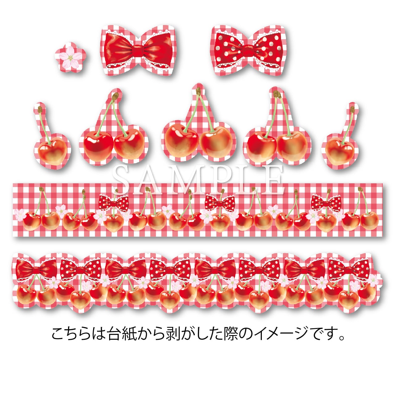 ★受注生産【Berry & Cherry Gingham -cherry-】ステッカーシート2枚