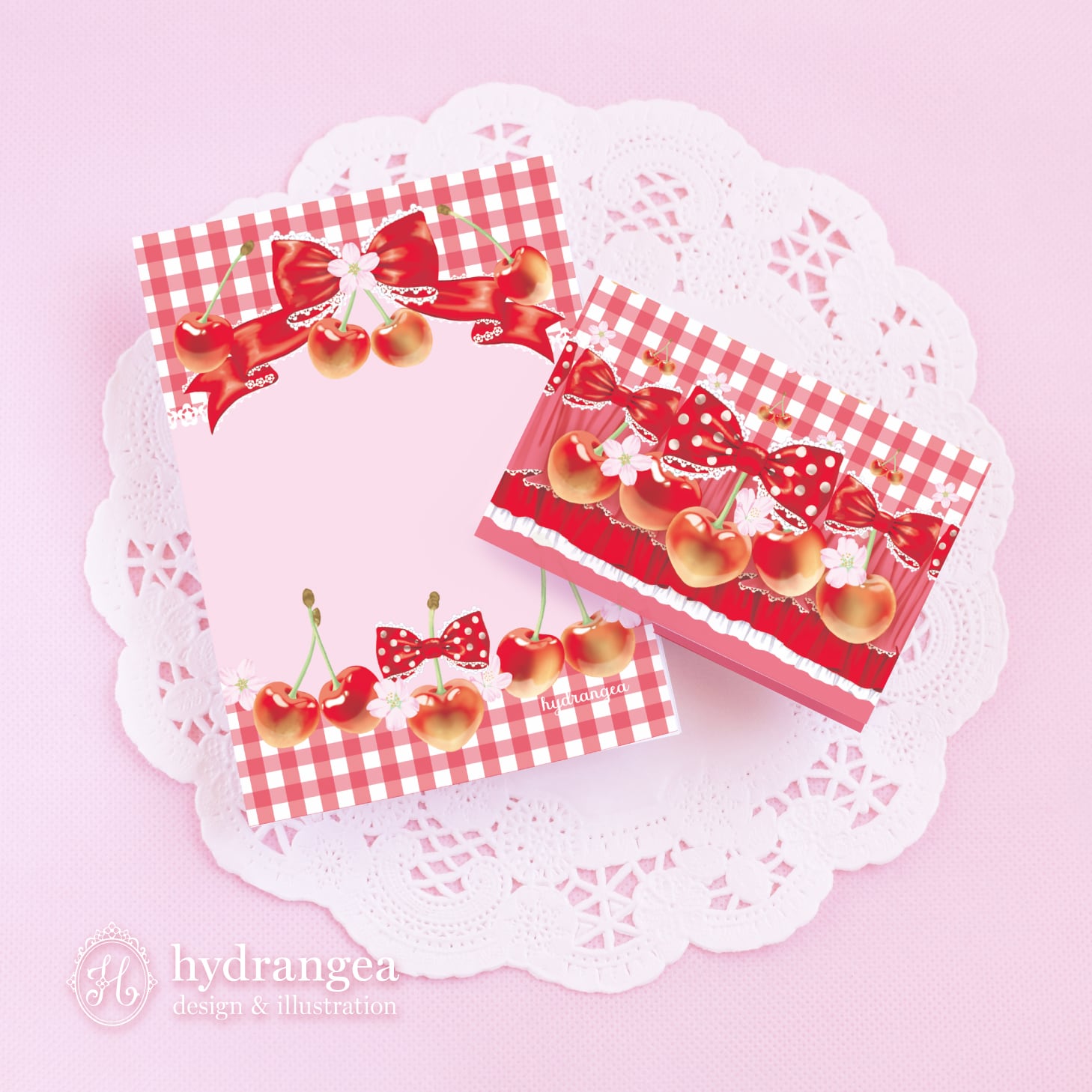 【Berry & Cherry Gingham -cherry-】両面メモ(予備生産分)